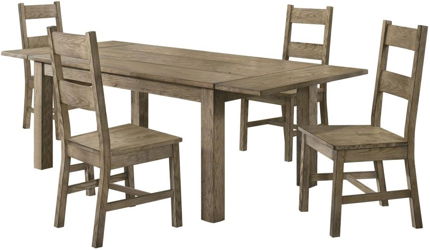 Includes: One (1) extension dining table and four (4) side chairs