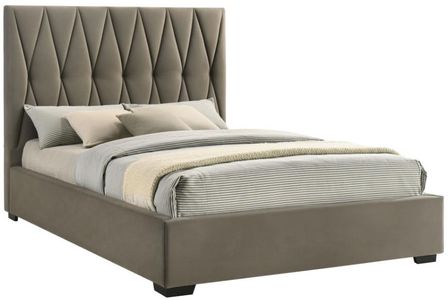 Graceful and grounded, this upholstered platform bed evokes a sense of quiet luxury. Draped in light brown velvet, its tall headboard rises like a statement piece, adorned with dramatic diamond tufting that captures light and shadow in elegant motion.Read More