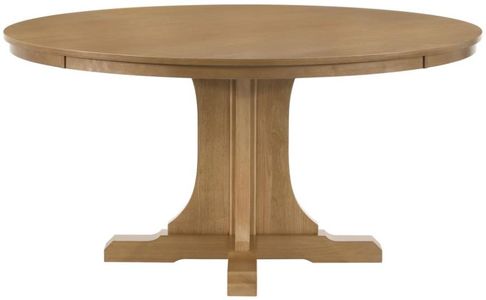 Blending traditional lines with a relaxed, natural finish, this round dining table offers a timeless foundation for mealtime gatherings. A sixty-inch white oak veneer top sits above a sculpted pedestal base crafted from solid rubberwood and engineered wood.Read More