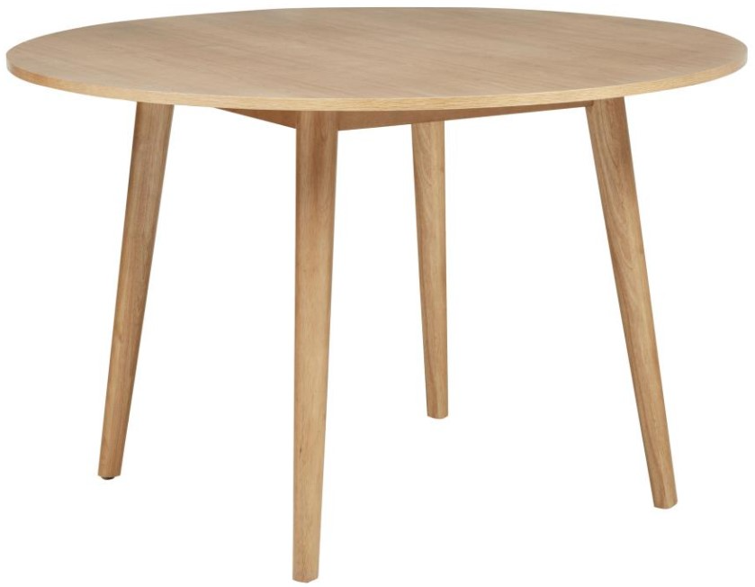 Round dining table in light ash finish blends mid-century charm with casual simplicity