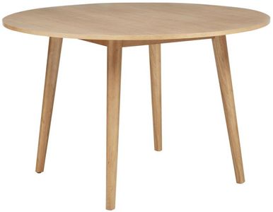 A graceful blend of simplicity and warmth, this round dining table evokes mid-century charm with its smooth circular top and tapered legs. Crafted from solid rubberwood with ash veneer over engineered wood, it showcases a radiant wood grain beneath a light ash finish.Read More