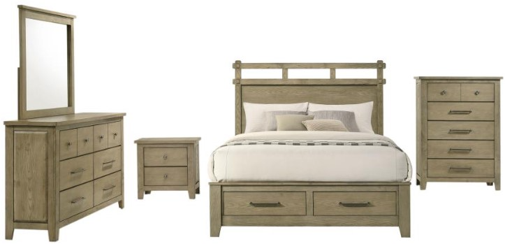 Includes: One eastern king bed, one nightstand, one dresser, one dresser mirror, and one chest of drawers