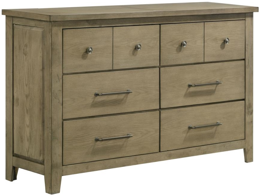 Six-drawer dresser offers rustic-modern balance with clean lines and smart function
