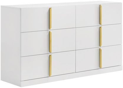 Clean and structured, this six-drawer dresser draws from Italian contemporary style to deliver bold presence and refined function. Finished in white high gloss PET thermoplastic, it offers a scratch-resistant, moisture-resistant surface that is both durable and eco-friendly.Read More