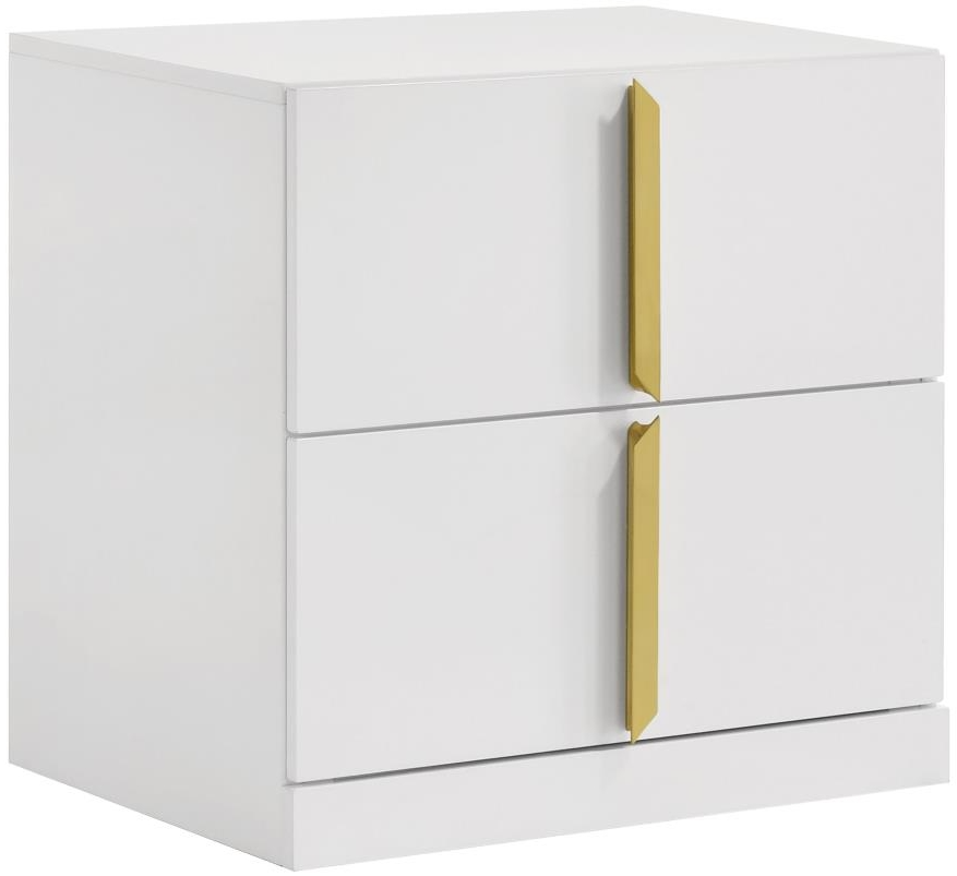 Bold in its simplicity, this two-drawer nightstand captures modern Italian influence with practical functionality. The white high gloss finish is made with eco-friendly PET thermoplastic, offering a surface that resists scratches, moisture, and heat.Read More