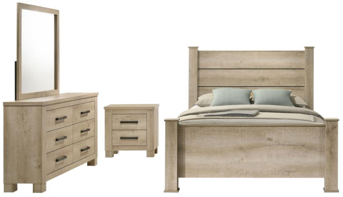 Bedroom set with a cohesive rustic design and modern touches