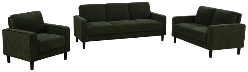 Blending modern simplicity with everyday comfort, this seating set offers clean lines, plush cushions, and structured silhouettes. Slim track arms and piped trim frame each seat, while angled legs add subtle lift and mid-century influence.Read More