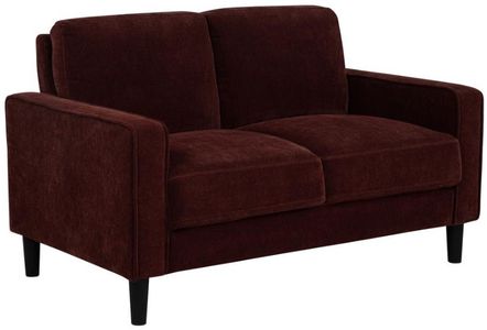 Loveseat in rust fabric offers a compact two-seat design with clean structure