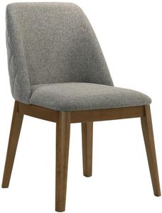 This upholstered dining side chair brings tailored comfort and refined texture to the dining room. Wrapped in soft grey fabric, its gently contoured seat and backrest are padded for supportive comfort, while the back features elegant diamond-quilted stitching for added dimension.Read More