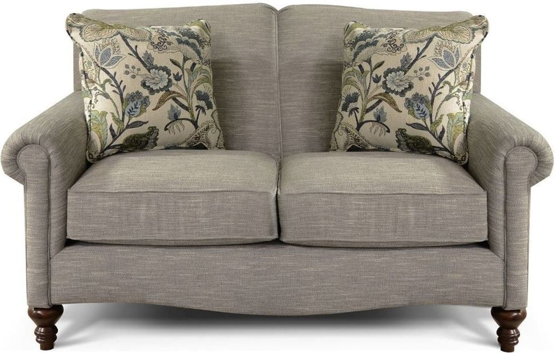 If you are looking for a petite sofa with loads of charm, then Eliza might be just what you're looking for. Its rolled panel arm, camel back, and curved front rail, give it a ton of style! We offer a matching loveseat, chair, rocking chair, and ottoman.Read More