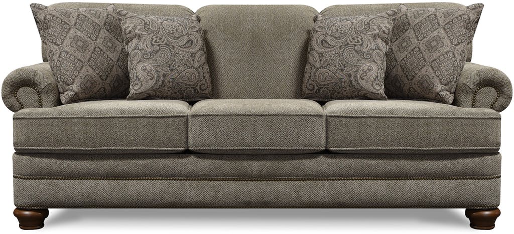 Satisfy your classic taste with our charming Reed collection. With its tight scroll back, rolled arm, turned bun leg, and bided front rail, you've got the makins of a living room masterpiece. Add an optional antique brass nailhead trim for added flair. The Reed collection features a sofa, loveseat, chair, ottoman, and sectional.