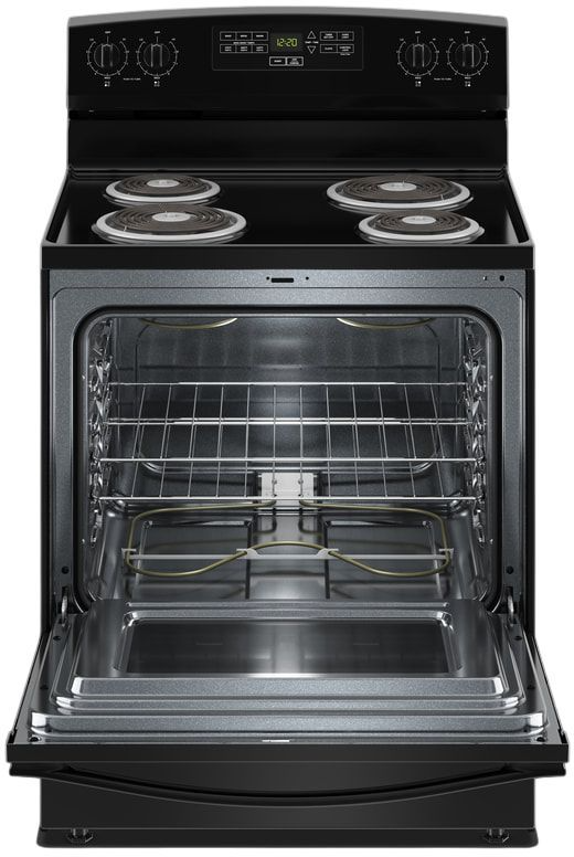 5.1 cu ft standard clean oven -Smooth surface makes cleaning by hand easier. Extra-large Oven Window - Mark the progress of your food without opening the door. Porcelain upswept cooktop - Raised edges contain spills, while the surface is easy to wipe clean.Read More