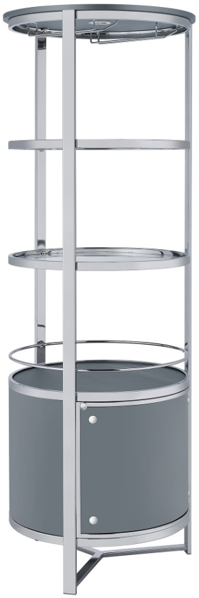The Lalia wine rack with LED features multiple open glass shelves allow you to decorate, perfectly complementing hidden storage in the bottom cabinet. Two wine glass holders and a convenient LED light adorn the top shelf, while the sleek, chrome finish of the cylindrical frame adds unique, eye-catching style.Read More