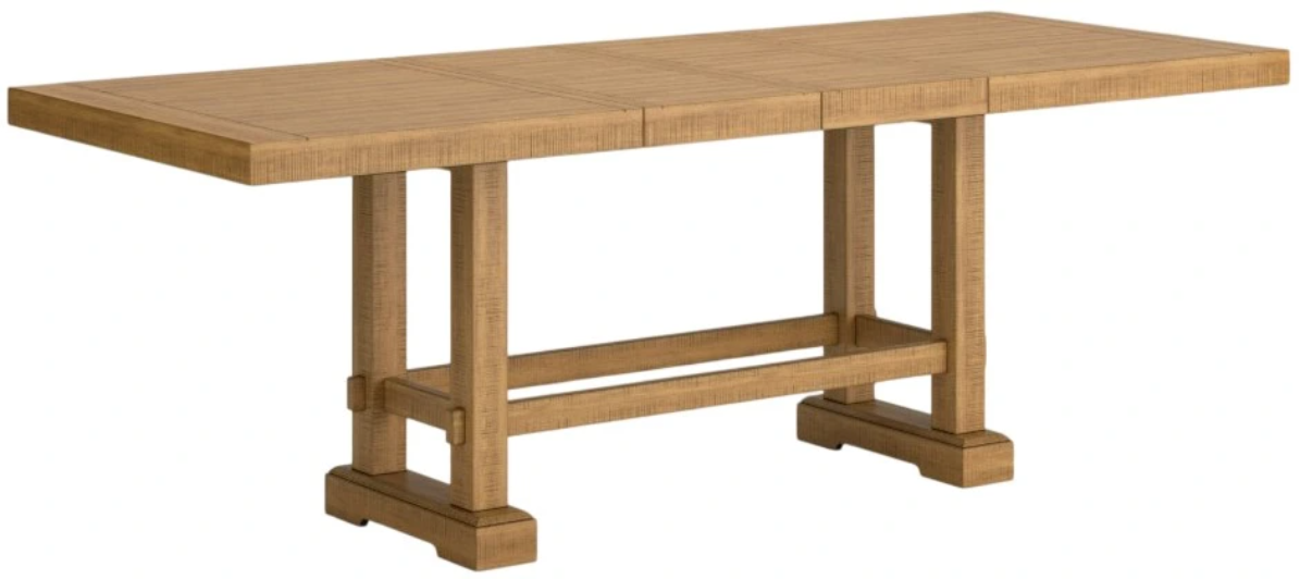 This counter height dining table is a favorite for casual rustic interiors. Offering plenty of seating space, it’s your answer for everyday living and impromptu guests. And the distressed pine finish, double trestle base and two extension leaves? Deliciously charming and versatile.Read More