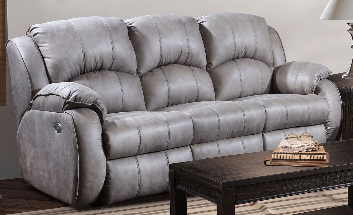 The Cagney Collection from Southern Motion brings the highest levels of comfort disguised in this durable poly blend material. A few of the design elements to note are the pillow top poly-foam arm pads that support your arms. The arm frame itself is radius-ed just enough to add dimension and style, as well as the pub backs which have subtle partitions with decorative French seams that provide just the right depth where your shoulder blades rest when you sit. The Cagney also has additional transitional elements like the padded wings and the pad-over-chaise seat pads with plenty of crown which helps to soften the overall appearance. With its power recline, power headrest and usb charging ports, its sure to be a hit in your home.