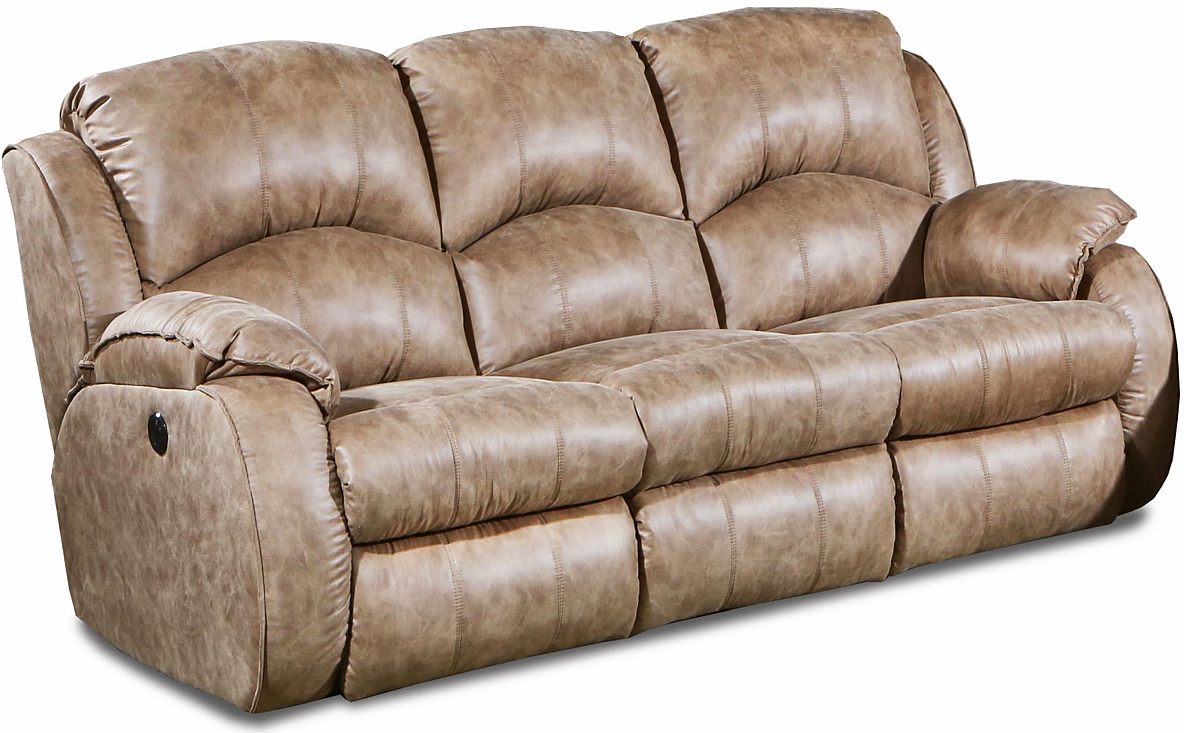 The Cagney Collection from Southern Motion brings the highest levels of comfort disguised in this durable poly blend material. A few of the design elements to note are the pillow top poly-foam arm pads that support your arms. The arm frame itself is radius-ed just enough to add dimension and style, as well as the pub backs which have subtle partitions with decorative French seams that provide just the right depth where your shoulder blades rest when you sit. The Cagney also has additional transitional elements like the padded wings and the pad-over-chaise seat pads with plenty of crown which helps to soften the overall appearance. With its power recline, power headrest and usb charging ports, its sure to be a hit in your home.