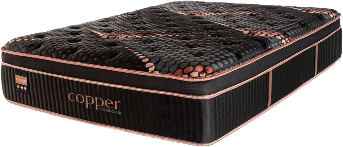The Copper by Spring Air Hybrid Quilted models provide wellness while you sleep in a choice of Firm, Medium, and Eurotop Plush comfort options. Hyper-soft copper infused memory foams complement the responsive 3-Zone 875 Encased Coil Unit with high-density perimeter foam encasement.Read More